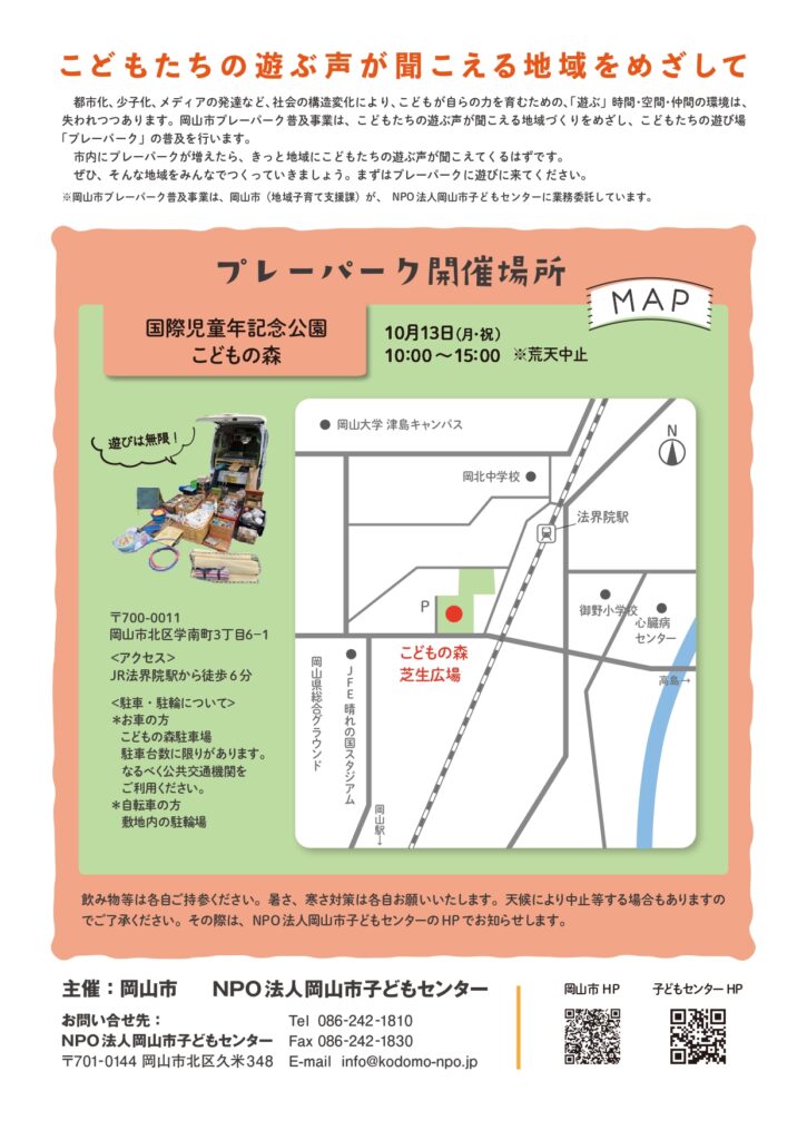 「岡山市プレーパーク普及事業プレーリーダー養成講座」の一環で1日プレーパークを開催します。