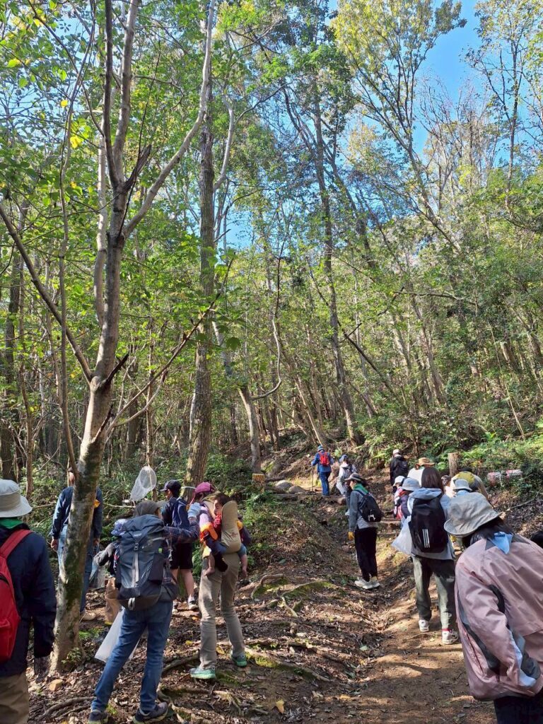 西上さんと登る山登りは、ゆっくりゆっくり歩きます。クモがいたら観察してみたり、洞窟があったら入ってみたり。西上さんの目線は、いつも面白いものを捕らえているように感じました。子どもたちも、疲れた様子を見せる子はほとんどいなく、自由な山登りを楽しんでいました。