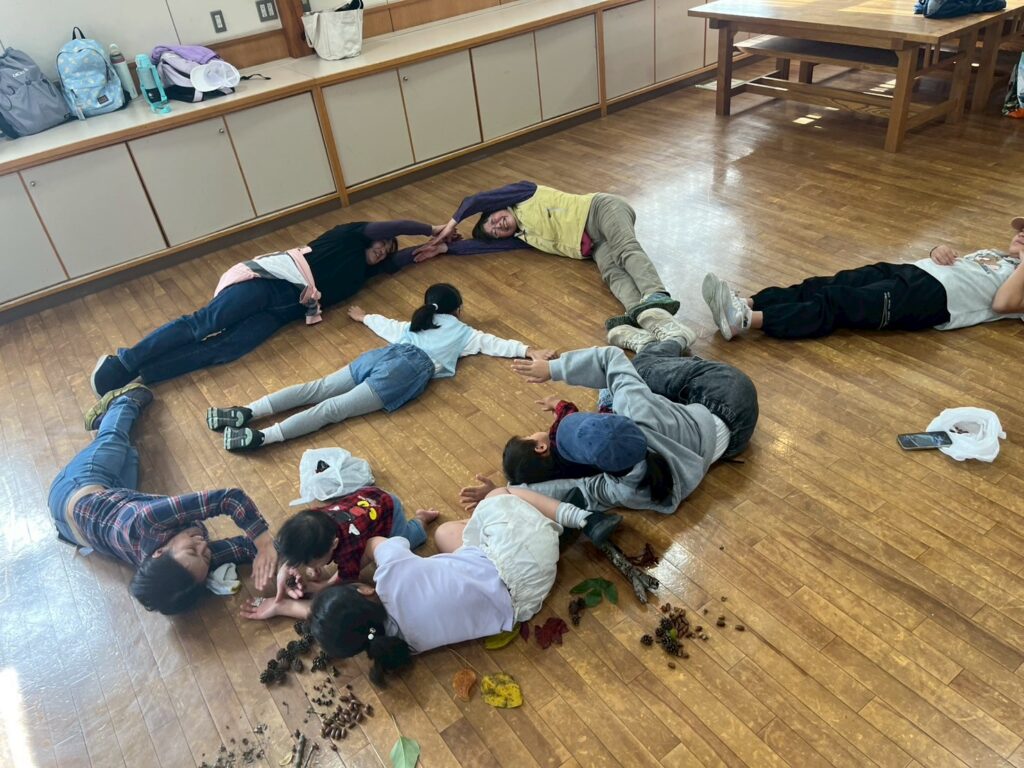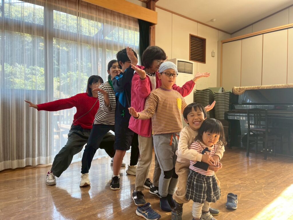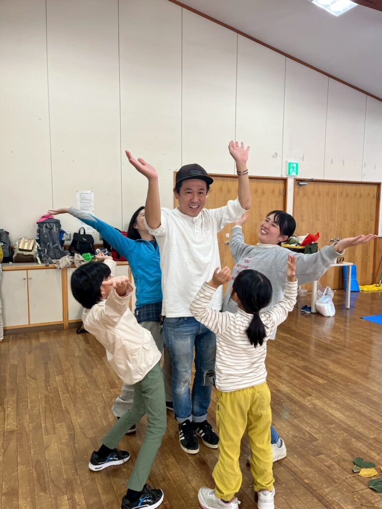 イノシシと月は、今回のような、山登りからの表現を繰り返して作られた劇だと教えてもらいました。山登りをした後の子ども達の感性はとても豊かで、山登りから始まることに、とても意味のあるワークショップなのだと思いました。また登りたいです!